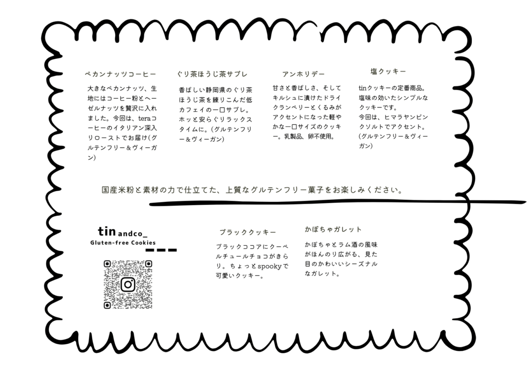 「tin(ティン)ことtin andco_(ティン アンドコー)」は、国産米粉をメインに使ったグルテンフリークッキーや焼き菓子を製造しています。